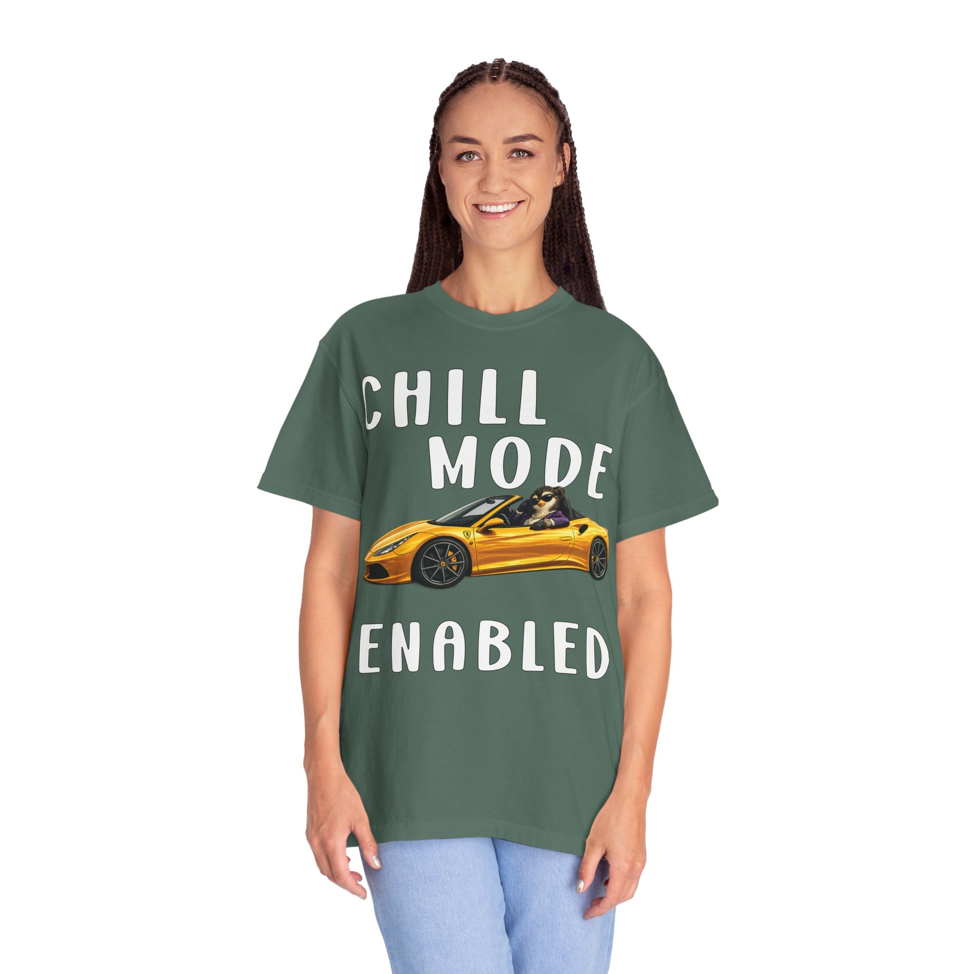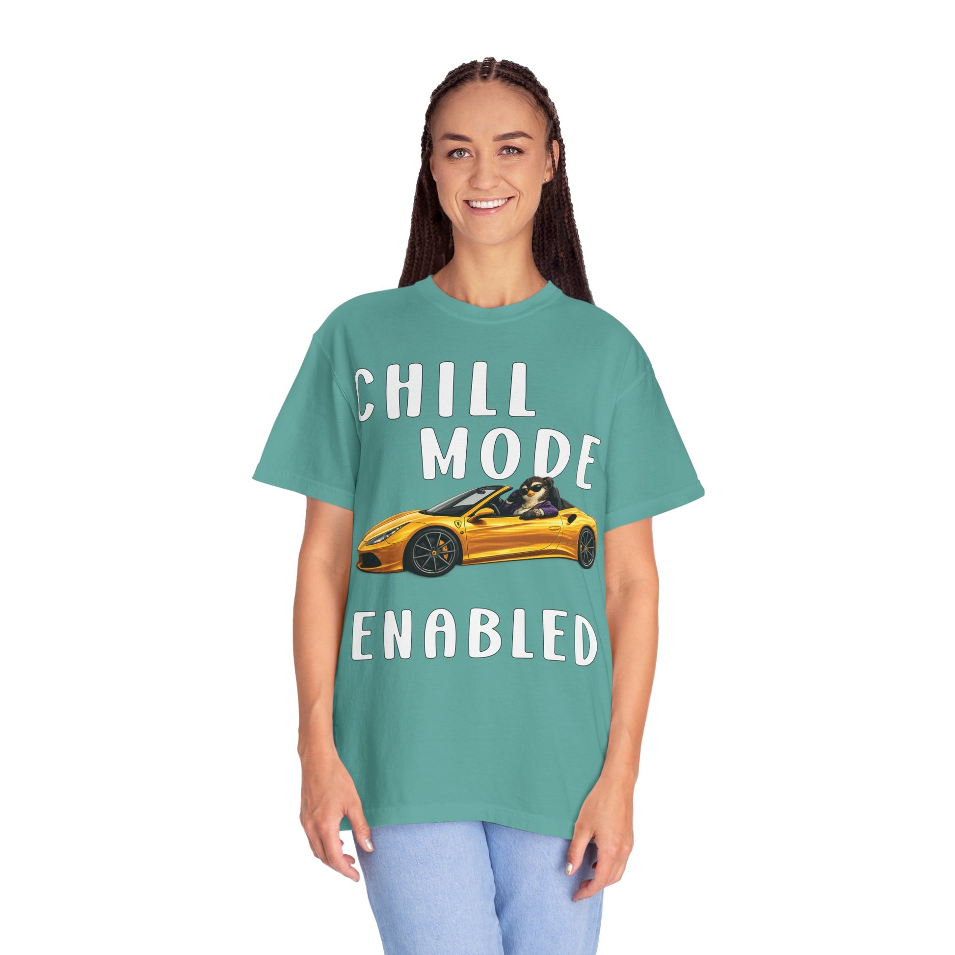 The phrase “Chill Mode Enabled” brings the attitude.